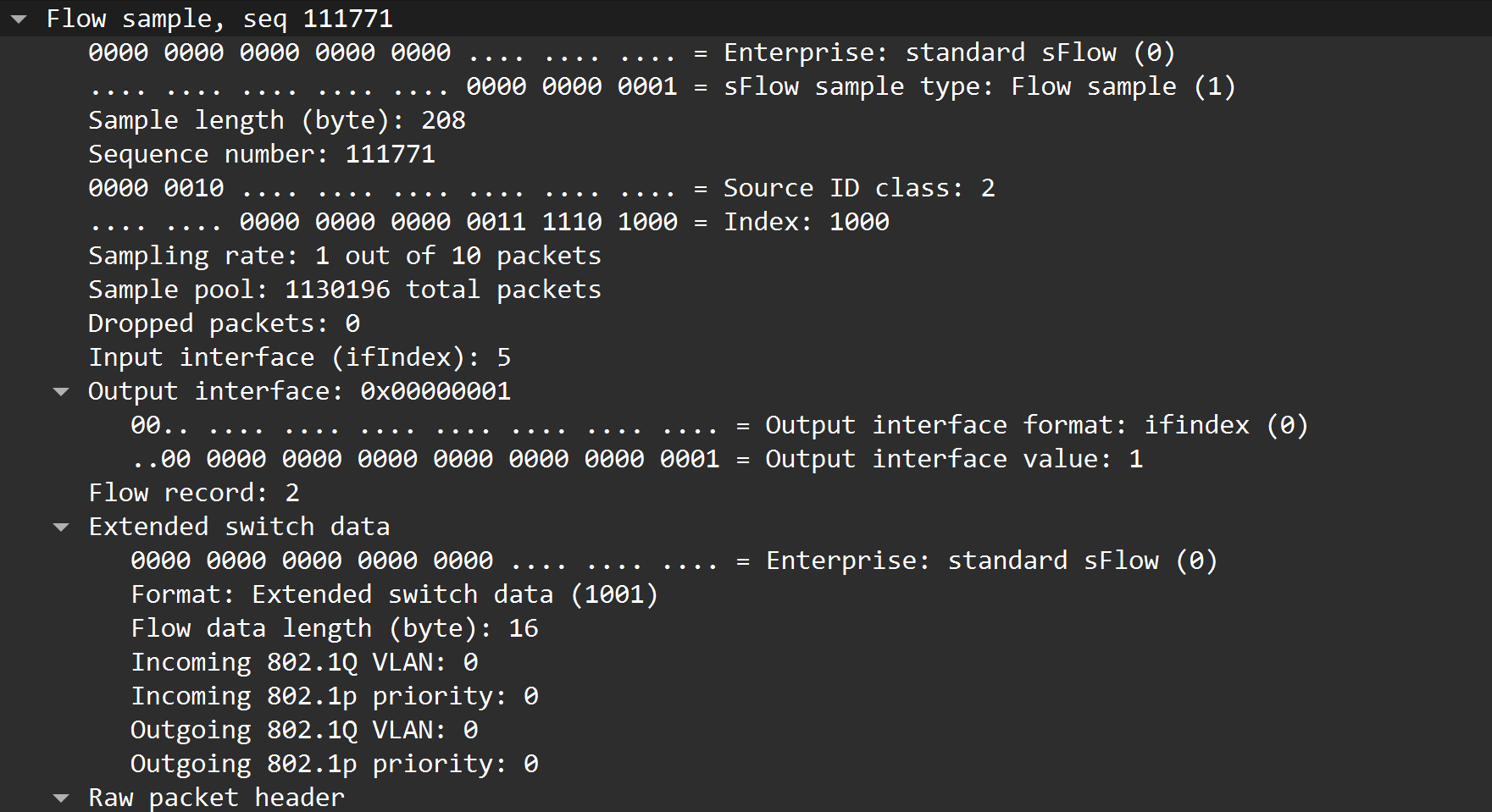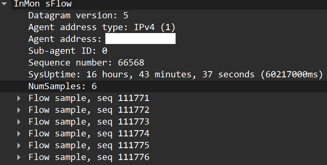 - 샘플: Datagram에 각 샘플링 데이터가 달려있는데, 종류는 Flow Sample, Counter Sample, Expanded Flow Sample, Expanded Counter Sample 총 4개가 있다.