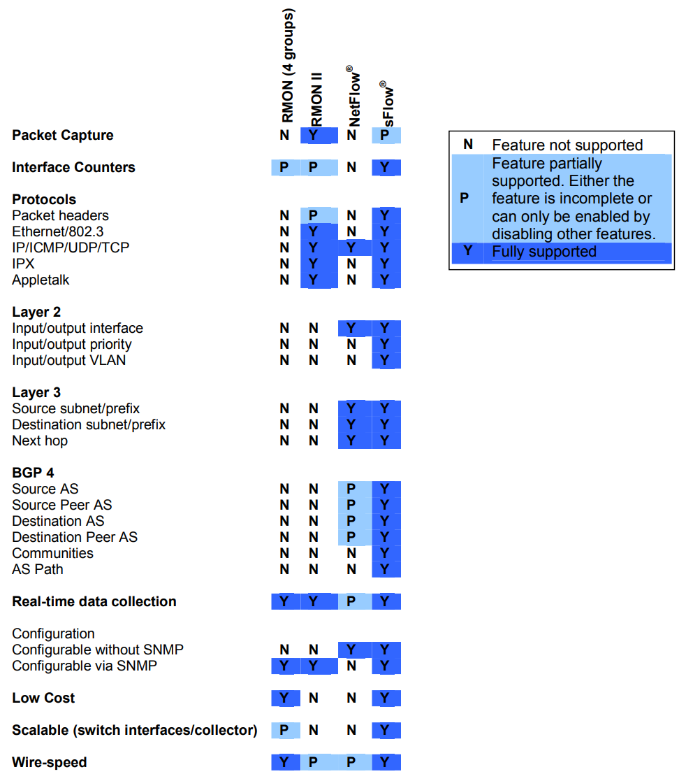 - NetFlow와 기능 비교 (주장): 이것만 보면 sFlow는 모니터링계의 가제트 만능팔이다. 작성 연도가 2003년인 점은 참고