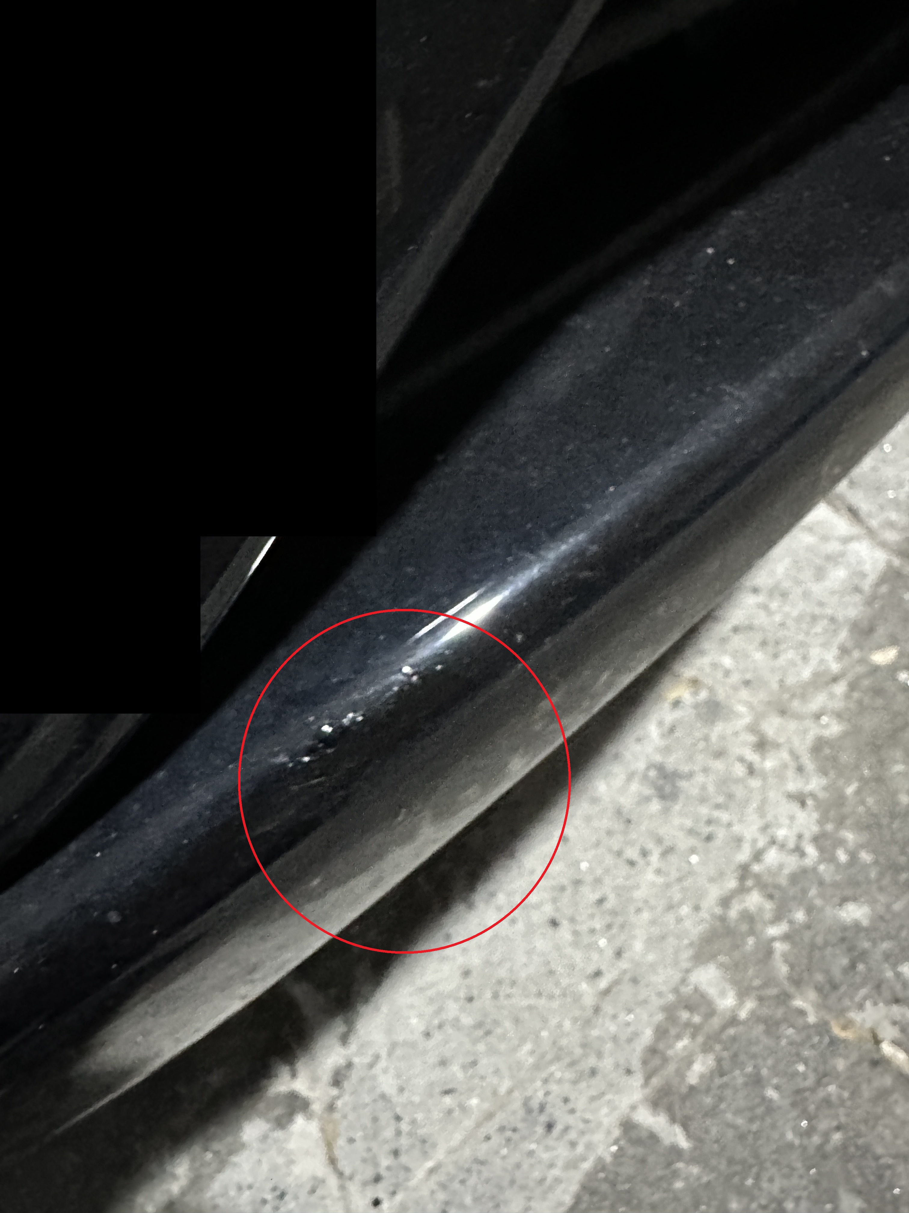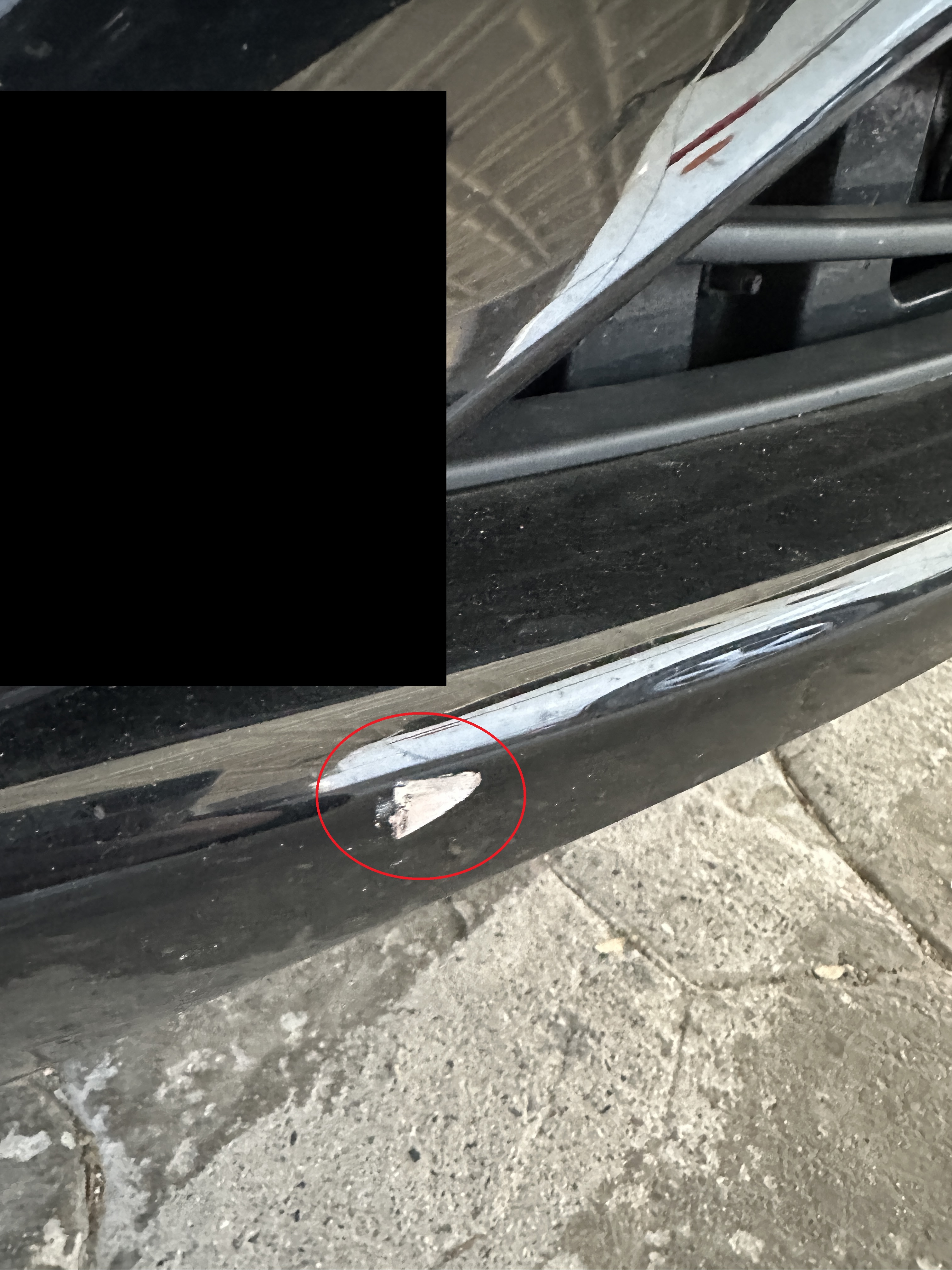 주차하다가 조수석 전방에 충돌이 있었는데, 스크래치 수준이 아니라 외부 도색이 까져서 차량 본판이 드러났습니다.